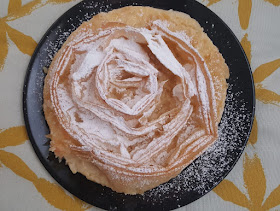 Aquest pastís és típic de Grècia i la recepta és d'un canal de Youtube Anna recetas fáciles. Com podeu veure el pastís ha quedat una mica esquifit perquè no tenia més massa filo. Hauré de repetir-lo una altra vegada.